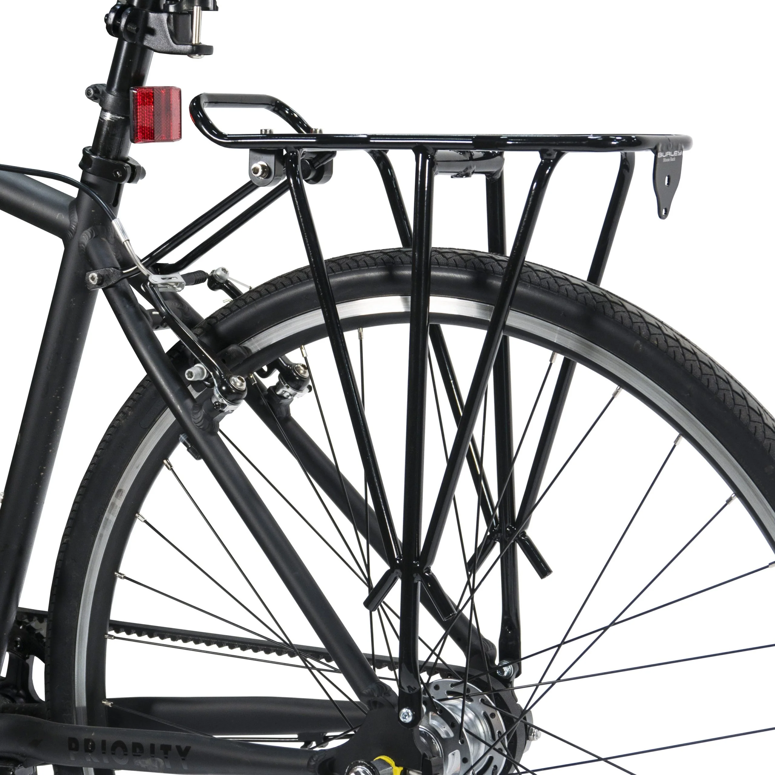A heavy-duty steel rear rack made for towing Burley trailercycles. Every new Piccolo and Kazoo trailercycle comes with a rack. Get an extra to enable use on another bike. Moose Rack includes the rack stays and hardware to mount to your bicycle.